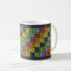 En roligt mugg för rosor, med ett geometriskt mönster som är tillverkat av brev av ROWING. Mugg är mycket färglöst, med rött, orange, gult, grönt och blått, i marinbakgrunden. Fira din favoritsport när du njuter av din välförtjänta te- eller kaffepaus.