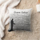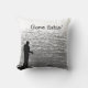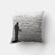 Låt oss bort allt och gå och fiska! Anpassa eller ta bort texten på dekorativ kudde som har en svart och vit bild av en ensam fiskare som står på en sten-ledd i Seneca Sjö i Genève i New York. Texten lyder: Borta fiske"