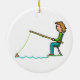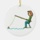 Fiskeriutformningen visar en patientvinkel sitta vid vatten när man tittar på flutit vid staven och linjen.
