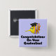 Den här kvadratiska knappen är så söt att du vill bära den och behålla den för minnen. 2 x 2 tum och med lätt lila baksida, en lila- och gult fisk med svart sockel med guld. "grattisar på studenten" är talesättet på denna knapp. Tillgänglig i alla storlekar.