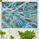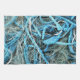 En färglös utformning av fiskenät och ljusblå rep från en båt och som förvaras på hamnbryggan.