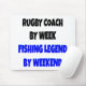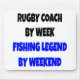 Denna humoristiska textdesign med frasen "Rugby Coach by Week Fishing Legend by Helg" är perfekt för alla som är en rugby-tränare varje vecka, men en fisketeckning av helg.