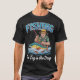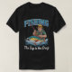 Den här designen har en svart t-shirt med ord "FISHING" överst i ett stiliserat blått teckensnitt. Under den är det en tecknad bild av en fiskare som färdas i en stor fisk. I grund står texten "Tug är drogen" i ett vitt skript.