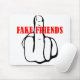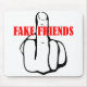 Mitten Finger Fake Friends tryckt på t-shirts och olika produkter.