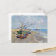 Ett vykort för bra med den postimponerande målningen, Fishing Boats on the Beach at Les Saintes-Maries-de-la-Mer (1888) av Vincent van Gogh (1853-1890) Fyra båtar förtöjda på sanden vid vatten kant.