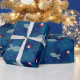Roligtens blåa fiske mönster inslagning papper. Blåfisk, linjer, krok och flyter. Allt på en blå kamouflage bakgrund.