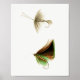 Fjädrarna i denna vintage av laxfiskeflottor består av kanin päls, fågelfjädrar och svarta strutsfjädrar.