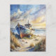 Vi firar kustlivets tysta skönhet med det här vykortet för vattenfärg med en vilande fiskebåt som vilar på en sandstrand. De varma tonerna från soluppgången och det försiktiga vågar i bakgrunden skapar en nostalgisk stämning i havsbottnen, perfekt för havets älskare, strandresenärer eller någon som har sjöräddningskonst. Perfekt för semesteranteckningar, sommartid i hälsning eller inramad som kustmurens décor.
