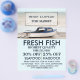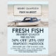 Fiskefartyg, fiskare/hustru, reklamflygare på fiskmarknaden från Affärskortet Store.