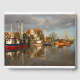 Gratulera till livet för din älskade med den här designen med fisketrålare i hamn nära hus.