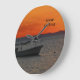 Fiskefartyg vid Sunset Clock, stor runda Klocka