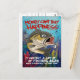 En tecknad abborre med vidöppen mun är på väg att bita på en fiskelock, omgiven av färgglad undervattensmiljö. Texten lyder, Pengar kan inte köpa lycka. Det kan köpa mycket fiskegrej, vilket i princip är samma sak.