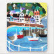 En munstycke av god bra med en handmålad papper kollageutformning av en liten hamn med fiskebåtar och fiskmås. Se även matcha gratulationskort, presenter och kläder