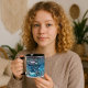 Ge mugg till Pappa i Fars dag. Lägg till en aning teater med denna färgfulla fiskskola som simmar på ett samordnat sätt bakom havet sten. Detta för med sig det fantastiska blå vatten, sten och fisken till ert hem.