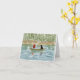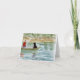 Med hans stort fångar svarthunden som håller ett öga ut för en bra, fiskar för en man från hans gammala gröna fiskebåt på en fridsam sjö i vattenfärgmålningen på denna noterar kortet. Högväxt gräs som står på packa ihop av sjön, reflekterar i blått-gråtten bevattnar. Från mitt original som skapas digitalt, avbilda.