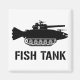 Kroppen och huvudet på en fisk med en pansrad tank, gevär och spår. En fisktank!