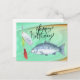 Fiskentusiast födelsedag med fisk krok akvarell vykort