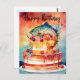 Ett födelsedags kort med fiske-tema är det perfekta sättet att visa din älskade hur mycket du bryr dig. Detta födelsedags kort med fiske-tema har en vacker bild av en fiskkrok, lockbete och rulle med orden "Grattis på födelsedagen"
