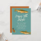 Födelsedagsinbjudan för vuxna män som älskar fiske. Fläckig öring och flugfiske-jigg-design på blågrått papper med off-white text. Personliggör lätt med hans namn i fet skrift högst upp. All information om festen läggs till i styckeform. Välj utskrifts- och/eller nedladdningsalternativ. Baksidan har en solid rostorange färg.