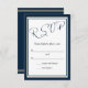 Lägg till den här eleganten Classic Navy och Guld Elegant bröllop OSA kort till ditt bröllopsinbjudningsmeddelande. Designat med text från flottan och gräns på vit bakgrund innehåller texten: OSA, ditt svar efter datum och utrymme för gästerna att föra in sitt namn. Den omvända sidan är designad med texten i Guld färgad och gräns på en marin bakgrund med texten: Bride & Groom's Namn och Bröllop. Om du vill anpassa dig infogar du bara dina uppgifter i vår enkla mall och ersätter exemplet. Se till att du kan se hela insamlingen för marin och Guld Elegant bröllop för matchande kort och tillbehör.