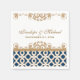 Elegant, snyggt och vacker fransk Den marockanska plattan inspirerade pappra blöjor med en upprepad safir med sapphire och marinblått och guld-geometriskt quatrefoil mönster och guld-hued fransk baroque stil blomstrar blommigt gräns. Vår storskaliga och lyxiga anpassningsbar napkins kan vara personlig med namnen av bruden och brudgummen eller fiende par och är perfekt för en högtidlig marockansk, indisk inspirerad, arabisk Natt eller Aladdin som temat bröllop, par, dusch, party eller förlovning firande. Design © Chrissy H. Studios, LLC. Alla reserverade Höger