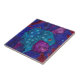 Keramiskt plattor med färgade konst, fiskfamilj - far, mor och deras barn - som flyter genom sjögräs. Lila, violett, azur och marin blå och burgundisk färg. Vävnadspapper och bläck-penna. Fairytale illustration, undervattens-/nautiska tema, tecknad stil. Den här teckningen passar perfekt i för barn eller i daglig dekoration. © Clipso-Callipso / Julia Khoroshikh 2018 #undervattart #fishart #nautical #underwater #clipsocallipso #ceramictile #badomdecor #badomideas #kitchendecor #plantserydecor #zazzazzle #zazzlemade