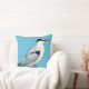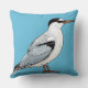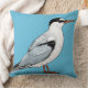 Ljus och livfull illustration med en fiskmås med detaljerad fjäderdräkt mot en enfärgad blå bakgrund, som betonar vilda djur, fågelarter och konstnärlig representation.