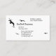 Detta affärskort är dekorerat med svarta silhuetter av flygande fiskmåsar. De flesta fiskmåsar är på lämnat kant och på väg mot er och lite till högerna. En flyger från grund högernas hörn. Det finns utrymme för all din kontaktinformation på kortets framsida. Bra för ett företag med en anslutning till utomhusen, särskilt till havs eller strand. Vissa möjligheter skulle kunna vara turistbutiker, surfor, fiskeredskap eller båthyror.