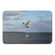 Två fiskmåsar med nya Waterford, uddBreton, Nova Scotia i bakgrunden. Fiskmåsen, som ser något liknande honom, är smutsar ner är en barnslig sillfiskmås, och den som är nedanför, är fakturerad fiskmås för avel den vuxna ringen.