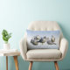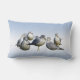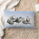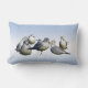 Det dekorativa dekorativ kudde har sex grått och vit fiskmåsar som samlats vid stranden en soldag. Bilden upprepas på baksidan.