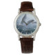 Fiskmåsar som flyger över havet, i blått, vitt och grått med beröring av kompletterande guld. Anpassa till dina önskemål (ta till och med bort all text om du vill).