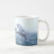 Fiskmåsar som flyger över havet, i blått, vitt och grått med beröring av kompletterande guld. Anpassa till dina önskemål (ta till och med bort all text om du vill).