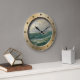 Den här designen innehåller en bild av en fraktas portyl som tittar ut till ett tryck av vintagen olja på sjölandskapet canvass som målar "Fiskmåsar Över Vågar" av Max Jensen. Du kan enkelt byta ut den här konsten mot din egen.