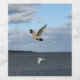Två fiskmås med New Waterford, Cape Breton, Nova Scotia i bakgrunden. Gullen som ser ut att vara smutsig är en ungsill Gull och den nedan är en vuxen Ring Billed Gull.