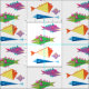 Cute fish art in shades in light blue rosa grönt gult and lila