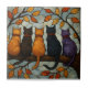Five Cats on a Tree Branch Stained Glass Style Kakelplatta