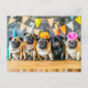 Five Pugs with Party Hats Together Vykort