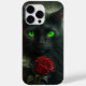 FJÄCKVATTENFÄRGSVART KATT MED ETT ENSKILT RÖD ROS