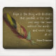 Härlig målad fjäder med ett citationstecken av Emily Dickinson om hopp: "Hoppas är saken med fjädrar som perches i soulen - och sjunger trimmar utan ord - och stoppar aldrig alls.", Härlig vis bakgrund. En fantastisk gåva för någon. Fotografi och konst av formgivare.