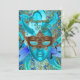 Fjäder Teal Guldmaskerad Fest Inbjudan