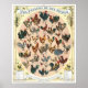 Vintage porträtt av värdefulla fjäderfäraser i världen. Femtiotvå typer av identifierade kycklingar. Från en originalkromolitografi från 1800-talet (1868) av Prang & Co. Med förbehåll för alla Höger © 2013 padre art.