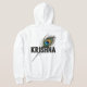 Logotypen har "Krishna" i namn i fet, 3D svart text. En levande pålfjäder, en symbol som ofta förknippas med Lord Krishna, sträcker sig från "K" i namn. Fjäderns tunna detaljer och rik färg kontrasterar på ett utmärkt sätt med textens enkelhet, vilket skapar en visuellt slående och andlig design.