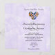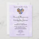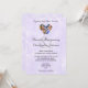 En söt och stilfull bröllopsinbjudan. Bakgrunden är ett lila akvarellmönster. En akvarelldesign av fjäder i en hjärtform högst upp. Romantiskt och sött.