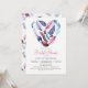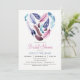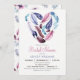 Lila, rosa, violetta fjädrar inbjudningskort för möhippan. Inbjudan har fjädrar i form av hjärta på framsidan, med anpassningsbar mönster på baksidan.