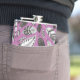 Svarta och vita fjädrar på violett, mönster ritade i Illustrator.