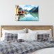 I Canvas landskap skrivs färghusen i den lilla byn Fjaerland ut med reflektion i vatten i Fjaerlandsfjord, gren i Sognefjord, omgiven av stora berg i Sogn og Fjordane, Norgen. Underbar dekoration på väggen!