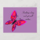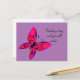 Vacker fjäril på lila bakgrund, finns på detta snart bättre postkort. Framsidan av postkortet lyder, "Skickar en kram och önskar snart bättre", och baksidan av postkortet lyder, "Hoppas du kommer tillbaka till att flyga högt igen snart"! Ett sött sätt att låta dig skicka snart bättre önskningar.