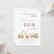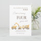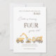 Gör dig redo att 'stoppa trafiken och stänga vägen' för en fantastisk fest! Vår byggtemainbjudan för ditt barns 4-årsdag handlar om kul och spänning. Med lekfulla gula byggfordon och ordet 'FYRA' i charmig akvarellstil, är denna redigerbara inbjudan din biljett till en byggtemafest som kommer att lämna ett bestående intryck. Låt oss gräva ner oss i en minnesvärd födelsedagsfest tillsammans!