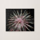 En strålande vit, rosa- och grönt-blixt från fyrverkeripjäsen i helgdag i juli belyser jet svarta himlar.