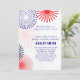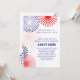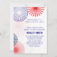 Denna moderna 4 juli i inbjudningskort för möhippan illustreras med stiliserade fyrverkerier. Det är perfekt för alla Independence day-duschar, bachelorette eller party på bakgården.